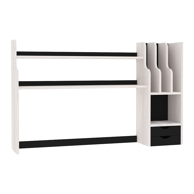 Два небольших ящичка, открытые полки и ниши стеллажа-надстройки к модулю NATURE (НАТУРА) 84 Cтол письменный помогут организовать рабочее место так, чтобы все было под рукой. Надстройка с фигурными закругленными краями может собираться на правую и левую сторону из одного комплекта деталей.