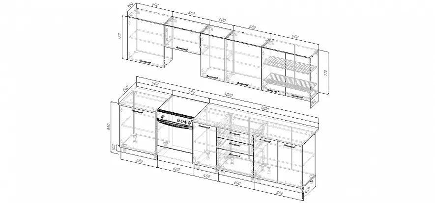 Кухня 3000 мм под отдельно стоящую плиту