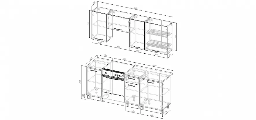 Кухня 2000 мм под отдельно стоящую плиту