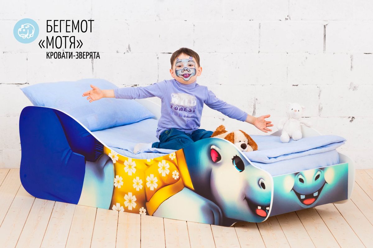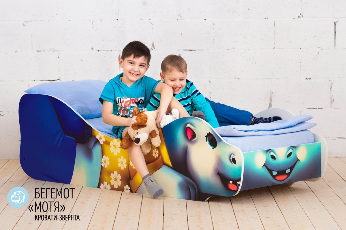 Детская кровать из серии «Зверята» выполнена в виде веселого Бегемота Моти. Яркое изображение симпатичного бегемотика не потускнеет и не сотрется со временем, так как оно нанесено на корпус при помощи УФ-печати, отличающейся долговечностью и безвредностью для детского здоровья. Все материалы, используемые в производстве кроватки, сертифицированы и отвечают современным требованиям безопасности.