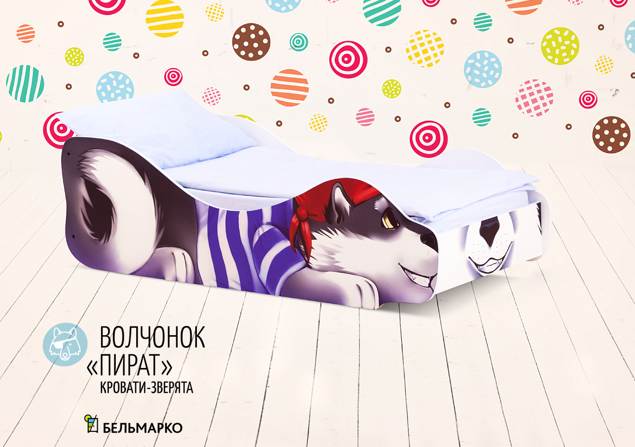 Гроза морей, смелый первооткрыватель неизведанных островов и просто герой – все это про него! Детская кроватка “Волчонок-Пират” не просто предмет мебели в детской спальне, но и надежный спутник для Вашего малыша в мире красочных фантазийных детских приключений и игр.