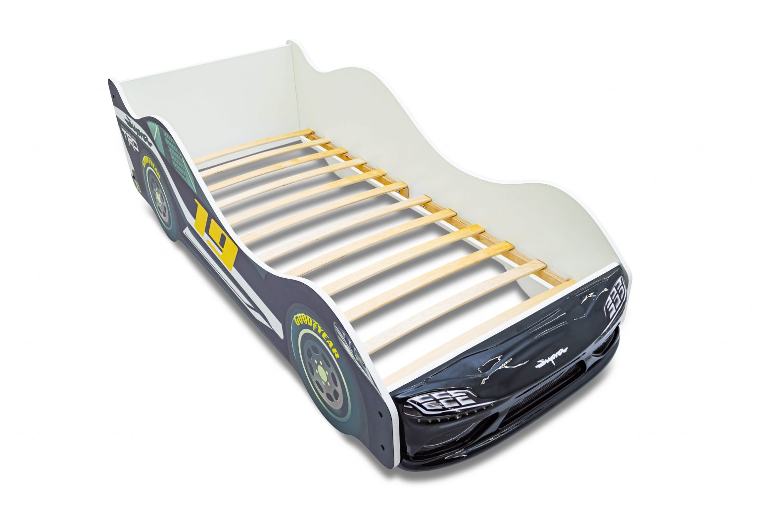 Детская кровать-машина “Супра” черная с подсветкой фар украсит любую детскую комнату. Кровать-машинка станет любимым местом для сна и игр мальчика или девочки от 2 до 10-12 лет.