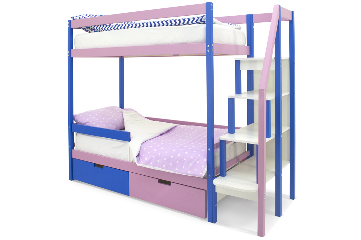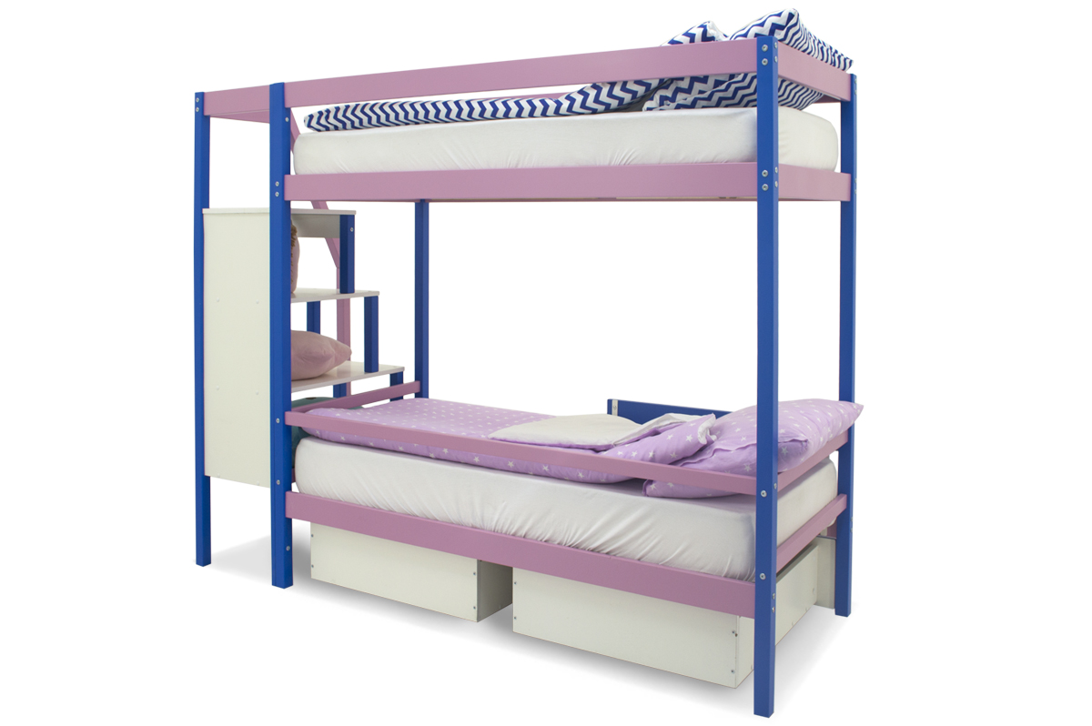 Детская двухъярусная кровать Бельмарко “Svogen синий-лаванда” решает проблему нехватки места в детской комнате мальчика или девочки от 2 до 10-12 лет. Благодаря двум ярусам и компактным размерам позволяет здорово сэкономить пространство детской комнаты.