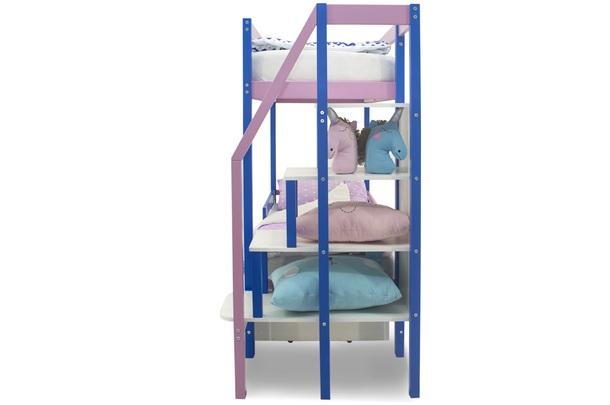 Благодаря своей конструкции, при которой оптимальна высота между ярусами и ширина спальных мест, кровать комфортна и удобна для сна и игр. Лестница и ящики под кроватью – это отличные места для хранения любых вещей.