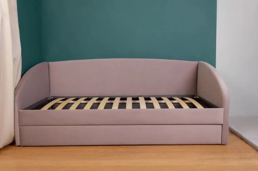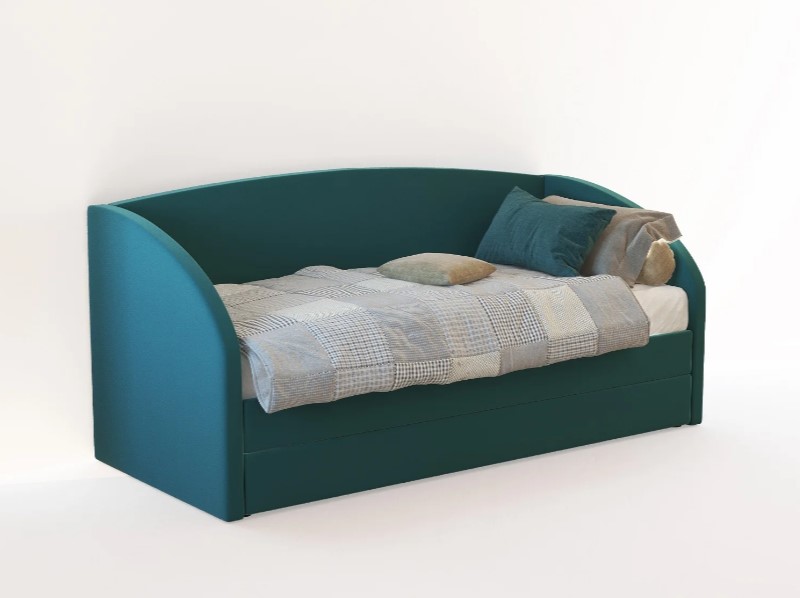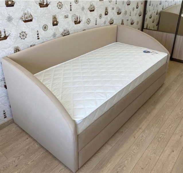 Модель оснащена выкатным ящиком для хранения. При изготовлении кровати использованы качественные материалы. Мягкость боковин и высокой спинки обеспечивает безопасный для здоровья наполнитель – ППУ и синтепон. Основание ортопедическое на цельносварной стальной раме.
