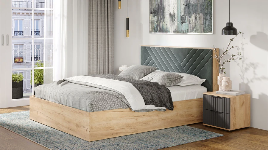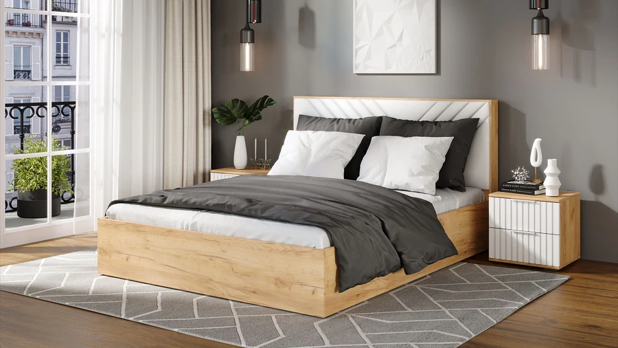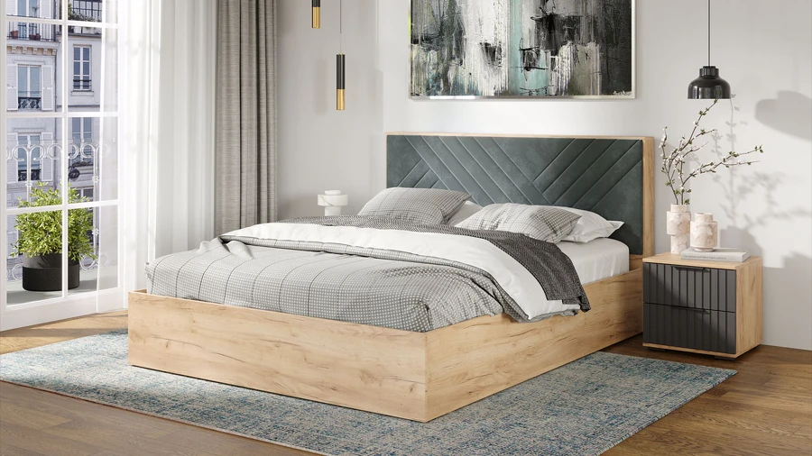 Кровать без ПМ Хилтон Тип 1 (без подъемного механизма) дуб крафт золотой/графит софт