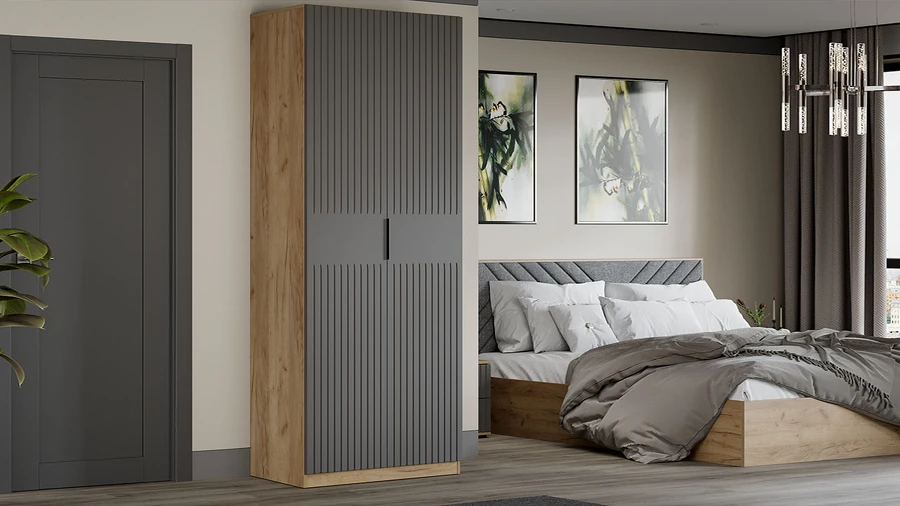 Шкаф для одежды Хилтон дуб крафт золотой/графит софт