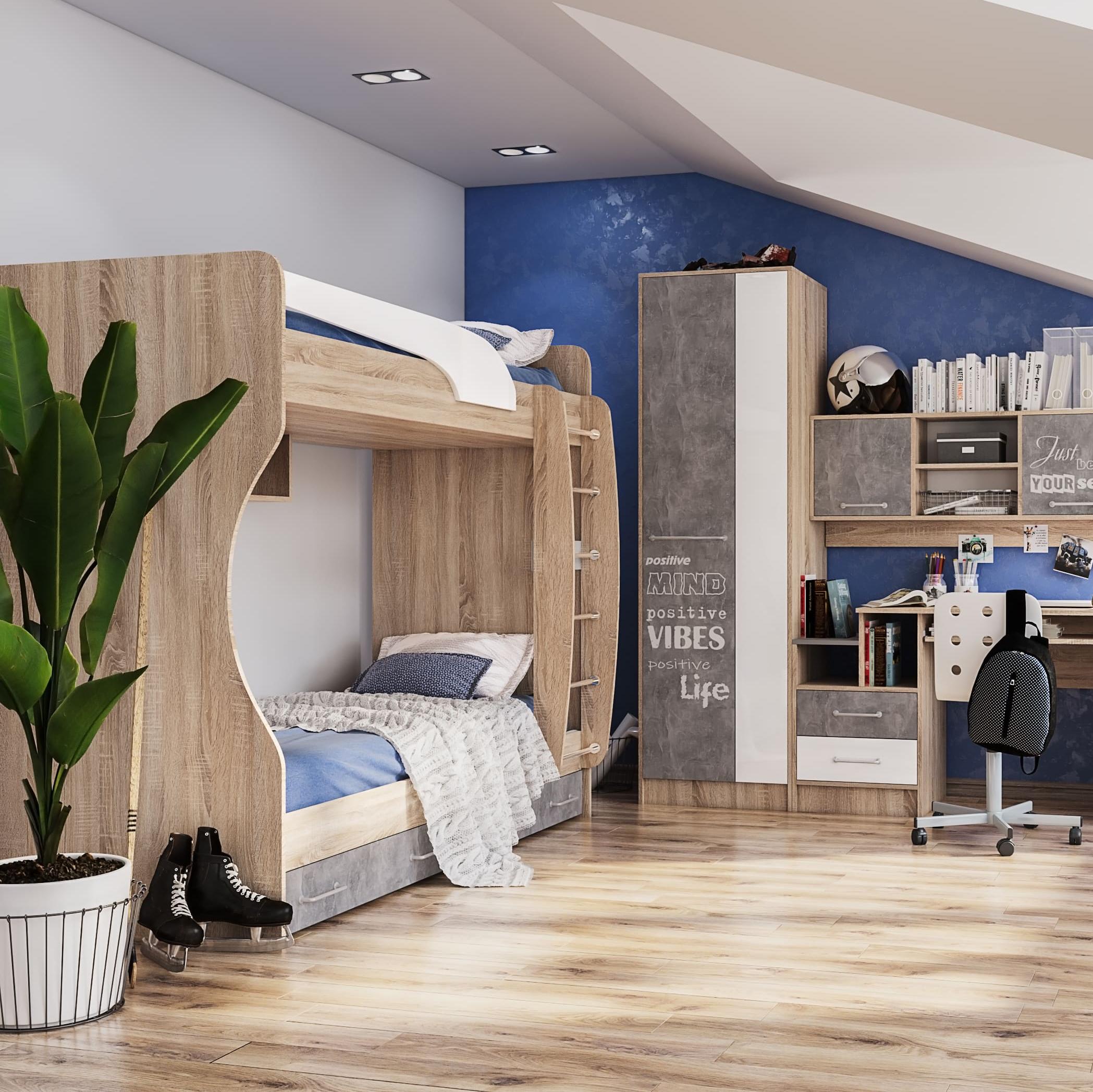 Практичное и невероятно стильное угловое завершение КОЛИБРИ (дуб сонома) — это идеальное решение для эстетичного, логичного и безопасного завершения мебельной композиции в современной детской или подростковой комнате, оформленной в стиле лофт, эко или сканди. Модель является функциональным элементом модульной детской КОЛИБРИ, позволяя гармонично дополнить шкафную группу и визуально сгладить строгие углы гарнитура. Выполненный из качественного ЛДСП в теплом и универсальном древесном оттенке «дуб сонома», этот открытый торцевой стеллаж добавляет интерьеру легкости и визуального уюта. При компактных габаритах (ширина всего 300 мм, высота 2000 мм, глубина 300 мм) конструкция отличается потрясающей вместительностью. Пять изящных радиусных (скругленных) полок обеспечивают быстрый и удобный доступ к вещам, идеально подходя для красивой демонстрации любимых книг, коллекционных игрушек, фотографий, спортивных наград или интерьерного декора.