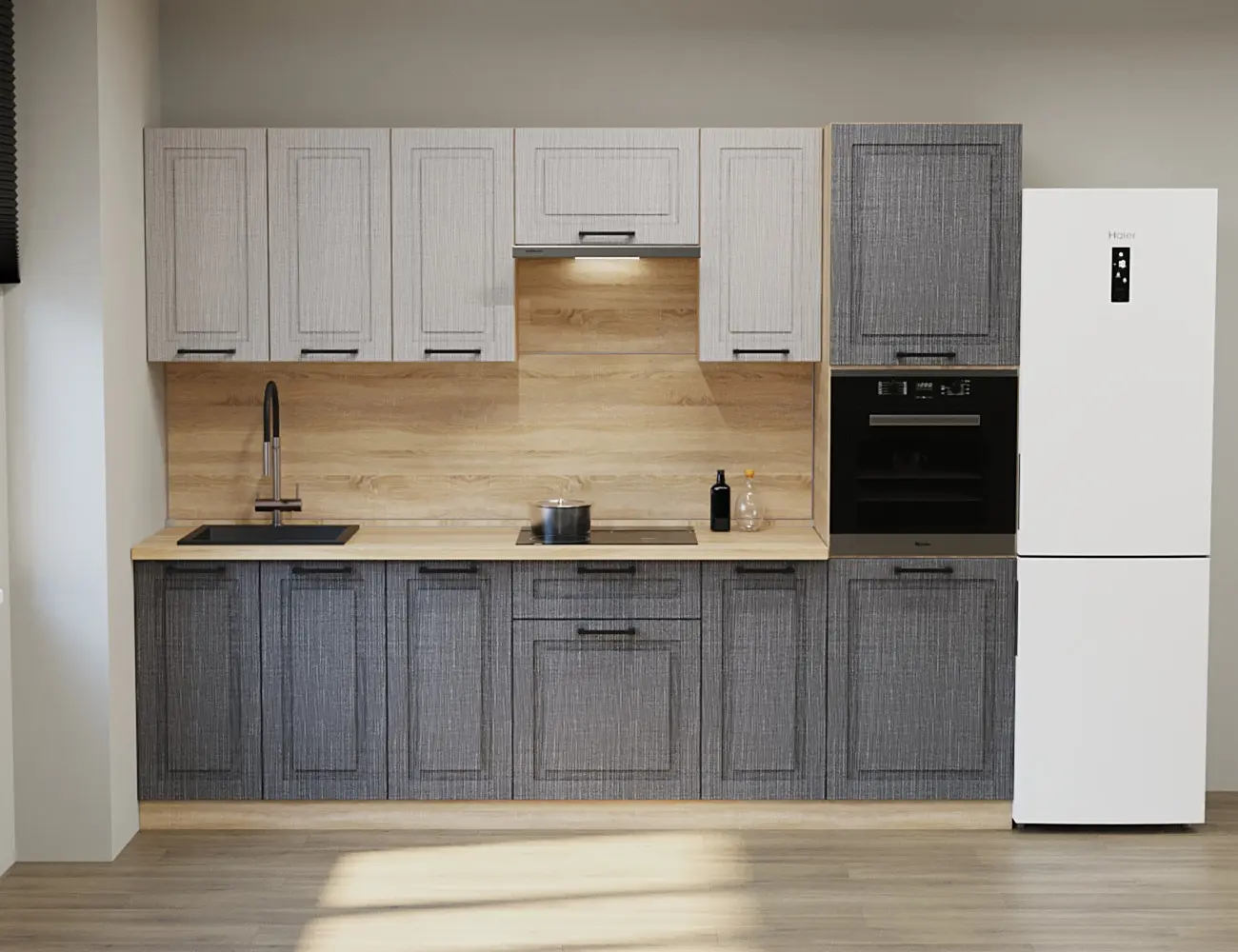 Аликанте 22: Цвет фасада: Чесура светлая, Чесура темная, корпус Дуб сонома, столешница 28мм Дуб сонома