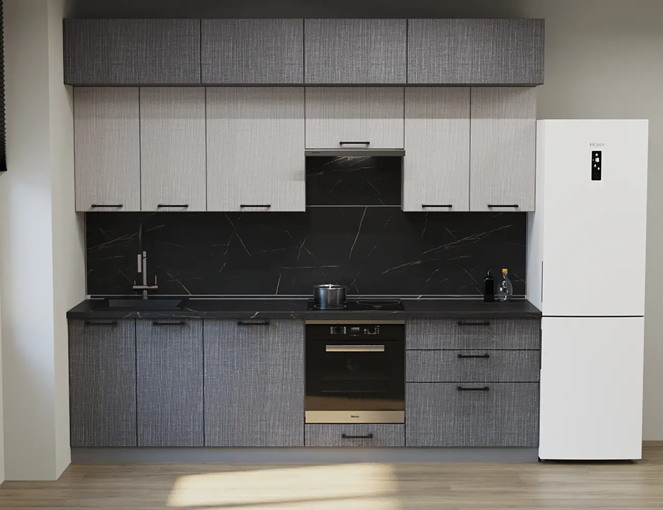 Аликанте 23: Цвет фасада: Шарли Pink, Шарли белый, корпус Серый, столешница 28мм: Каспий черное золото