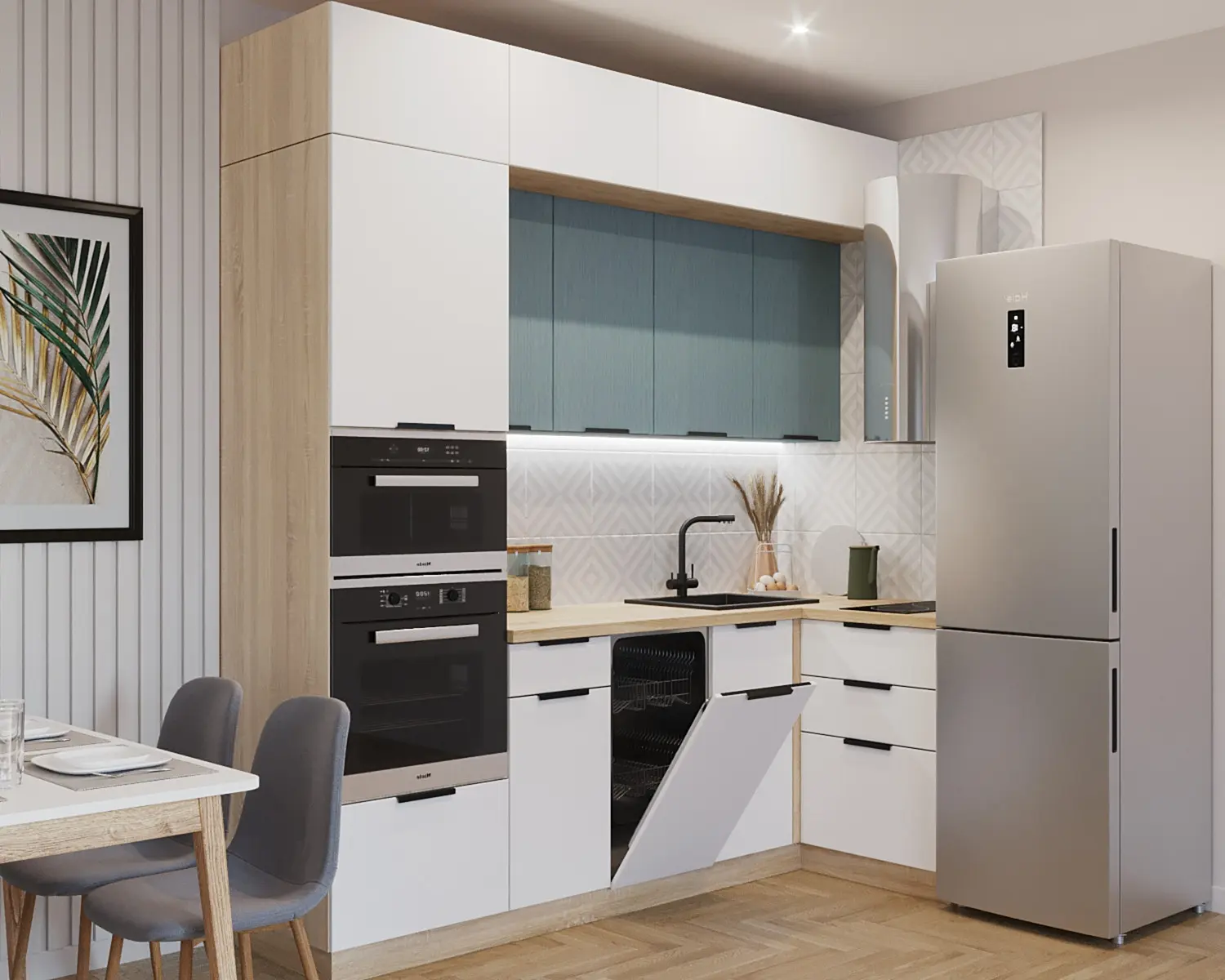 Магазин мебели «100Диванов» предлагает купить Кухонный гарнитур арт. 6 Тальк РоялВуд Голубой 2450х1200 мм в Салехарде по выгодным ценам от производителя с доставкой.