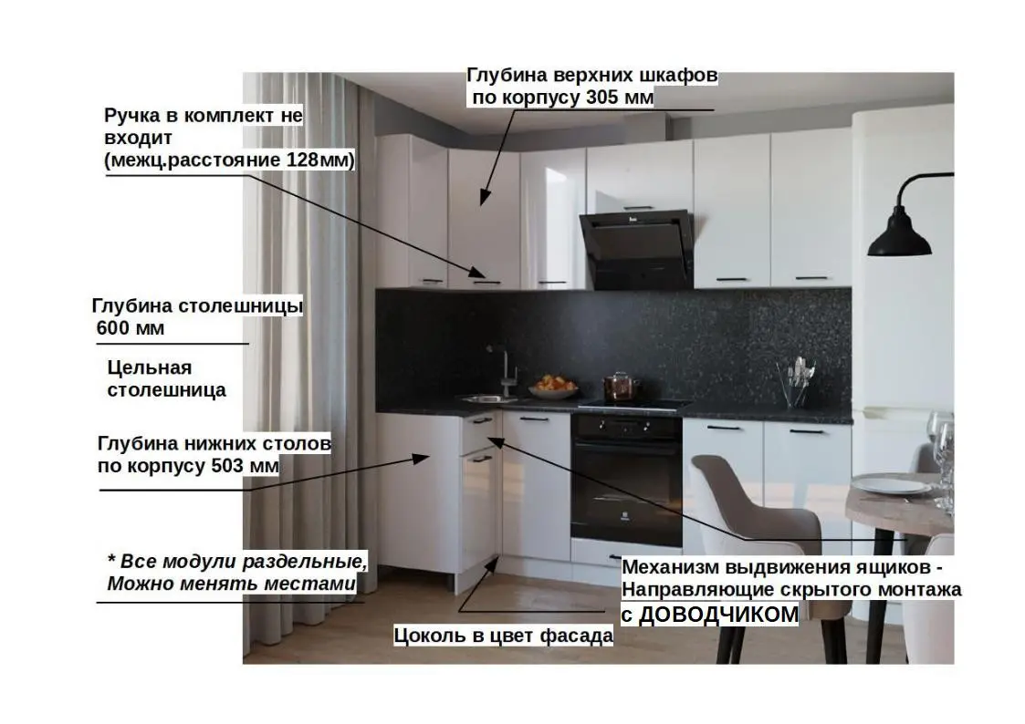 *Дополнительную информацию о том, как купить Кухонный гарнитур Белый глянец-8 (1000х2400 мм) уточняйте у нашего менеджера по телефону +79292022735.