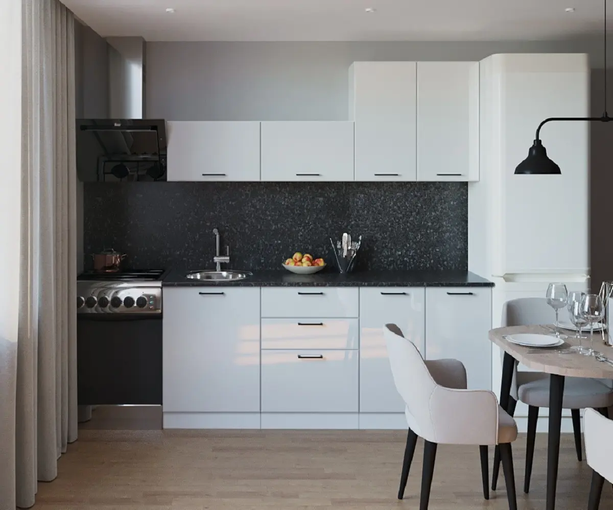 Белая глянцевая кухня неизменно пребывает на пике популярности. Она является настоящим олицетворением легкости, свежести и гармонии. В таком помещении даже воздух покажется более чистым, а солнечный свет наполнит ярким сиянием каждый ее уголок.