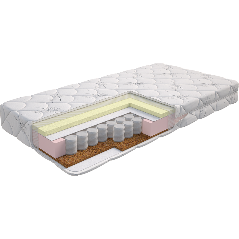 Комфортные слои из латекса и кокосовой койры. Материалы обеспечивают отличную упругость и поддержку, а также обладают антибактериальными свойствами, что делает сон ребенка не только приятным, но и безопасным.