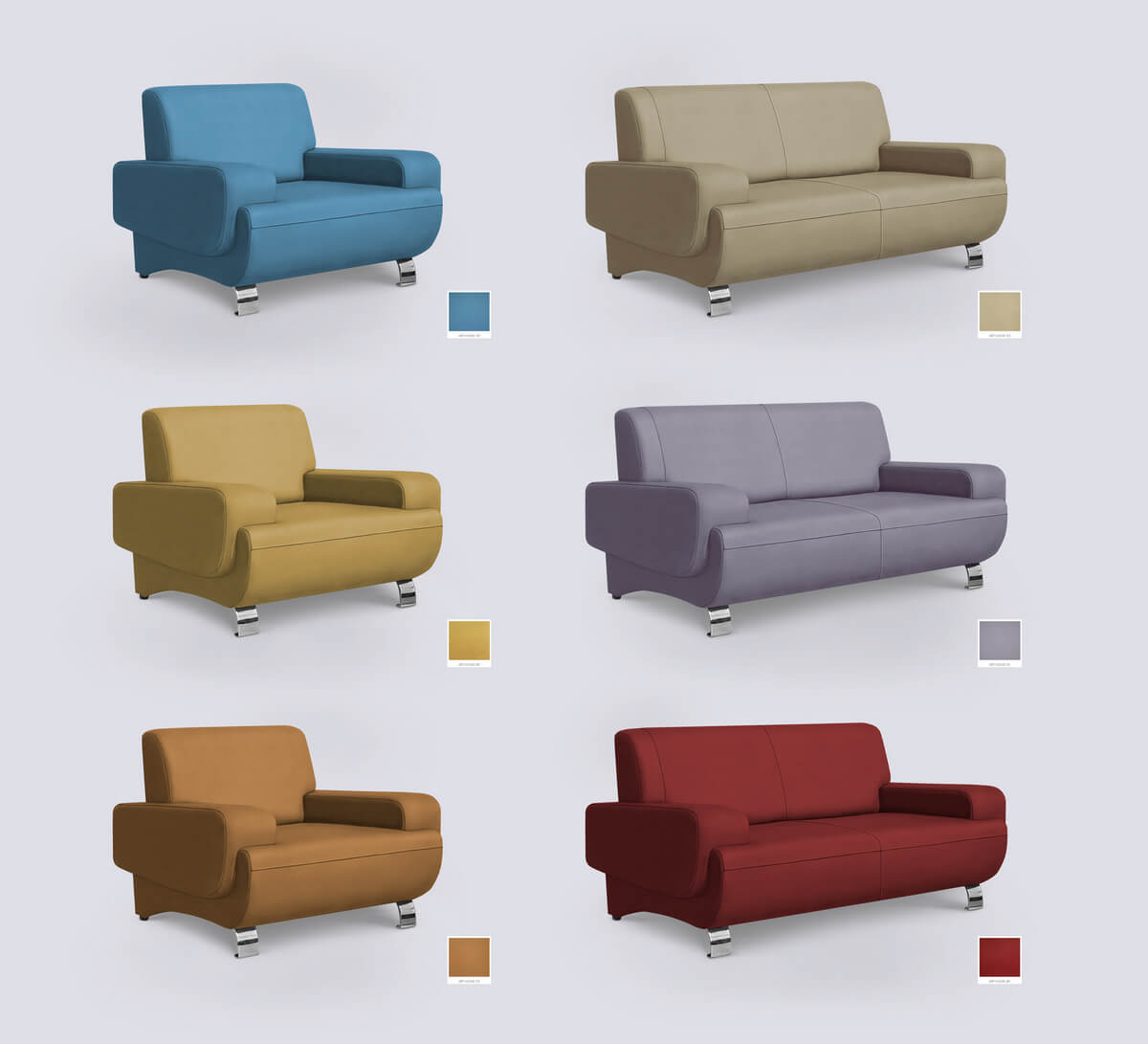 Сидение и спинка модели оклеивается пенополиуританом (ППУ) марки ST-2536, подлокотники ST-2236. Высота посадки 430 мм. Готовый диван (кресло) устанавливается на 2 пластиковые опоры высотой 25 мм и 2 хромированные высотой 120 мм.