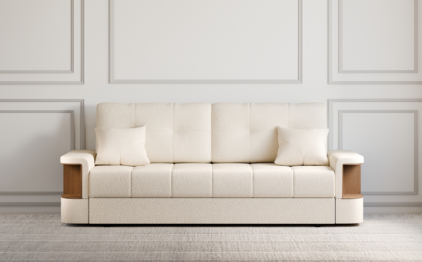 Прочный металлокаркас, упругое сиденье с независимым пружинным блоком, специальная простежка чехла и проверенный механизм "еврокнижка" гарантируют качественную службу дивана на долгие годы. Изюминкой модели являются функциональные подлокотники с нишами для хранения приятных мелочей.